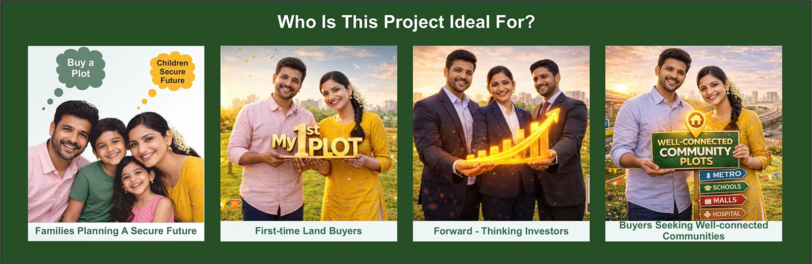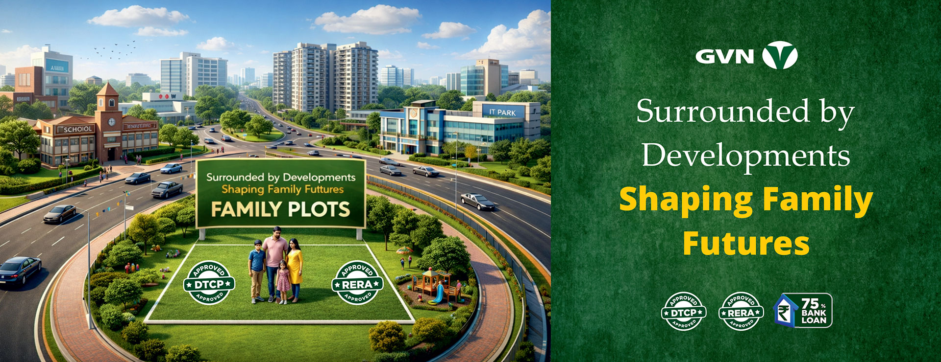 The development offers 240 Premium, Ready-to-Build Plots with Wider Internal Roads, ensuring comfort, openness, and ease of movement.