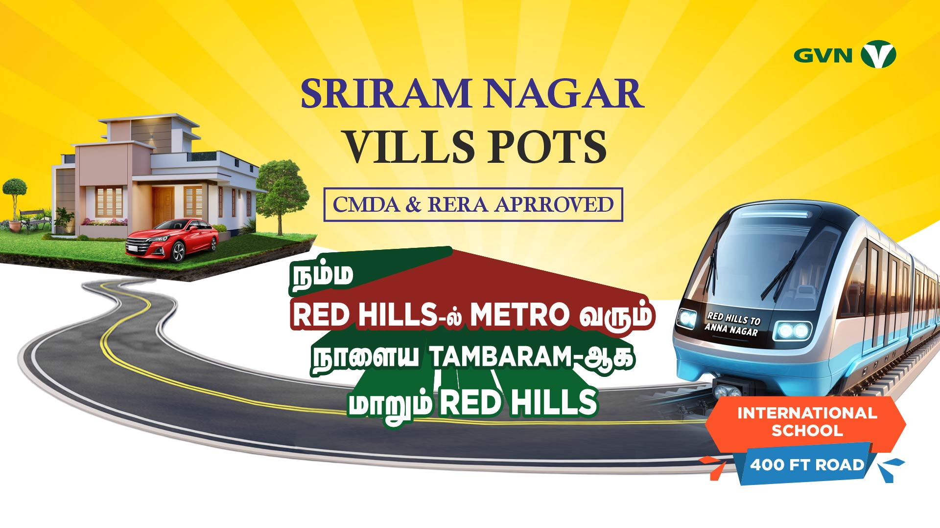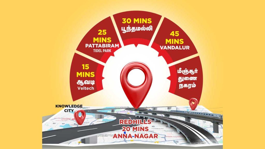 Sriram Nagar @ Redhills is the best affordable CMDA and RERA-approved Premium Plot close to Chennai city, strategically located for easy connectivity in a well-established residential area, opposite International School. Just 700 meters from the Vandalur-Minjur Outer Ring Road and 5 minutes from Medical College, this project offers excellent accessibility and convenience. Designed for immediate construction, it features well-laid blacktop roads and is secured with a gated compound wall. With 80% bank loan facility available, Sriram Nagar is the perfect choice for those looking for a hassle-free investment in a prime location.